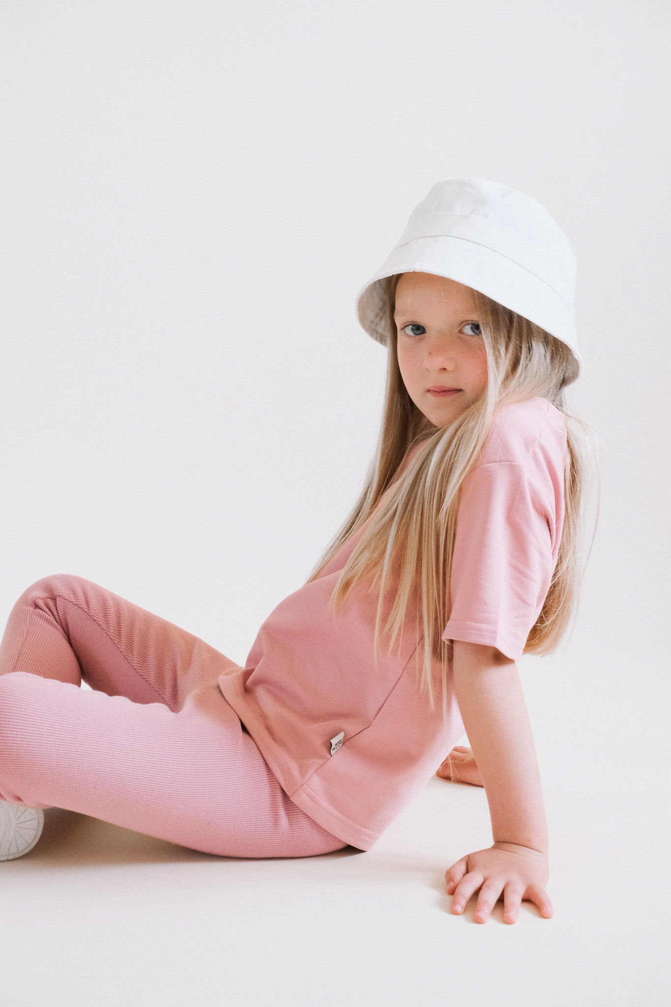 Klasyczny t-shirt oversize w kolorze delikatnego różu, który zapewnia maksymalną wygodę i swobodę ruchów. Uszyty z wysokiej jakości, mięsistej bawełny, doskonale prezentuje się zarówno na co dzień, jak i w bardziej casualowych stylizacjach. To idealna baza do dziecięcej garderoby – miękka, trwała i wyjątkowo komfortowa.